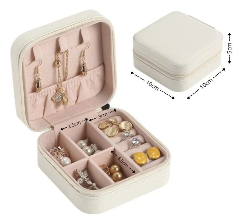 Mini Alhajero Organizador joyero portátil con un diseño elegante y funcional, cuenta con 5 compartimentos diseño permite un acceso rápido y cómodo a tus accesorios