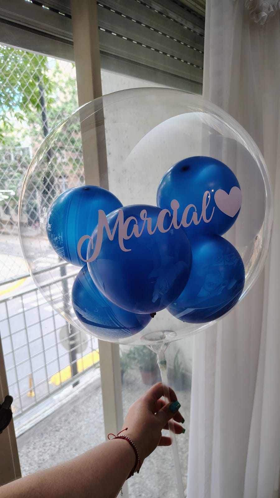 - 1 globo burbuja con globos internos inflado con aire